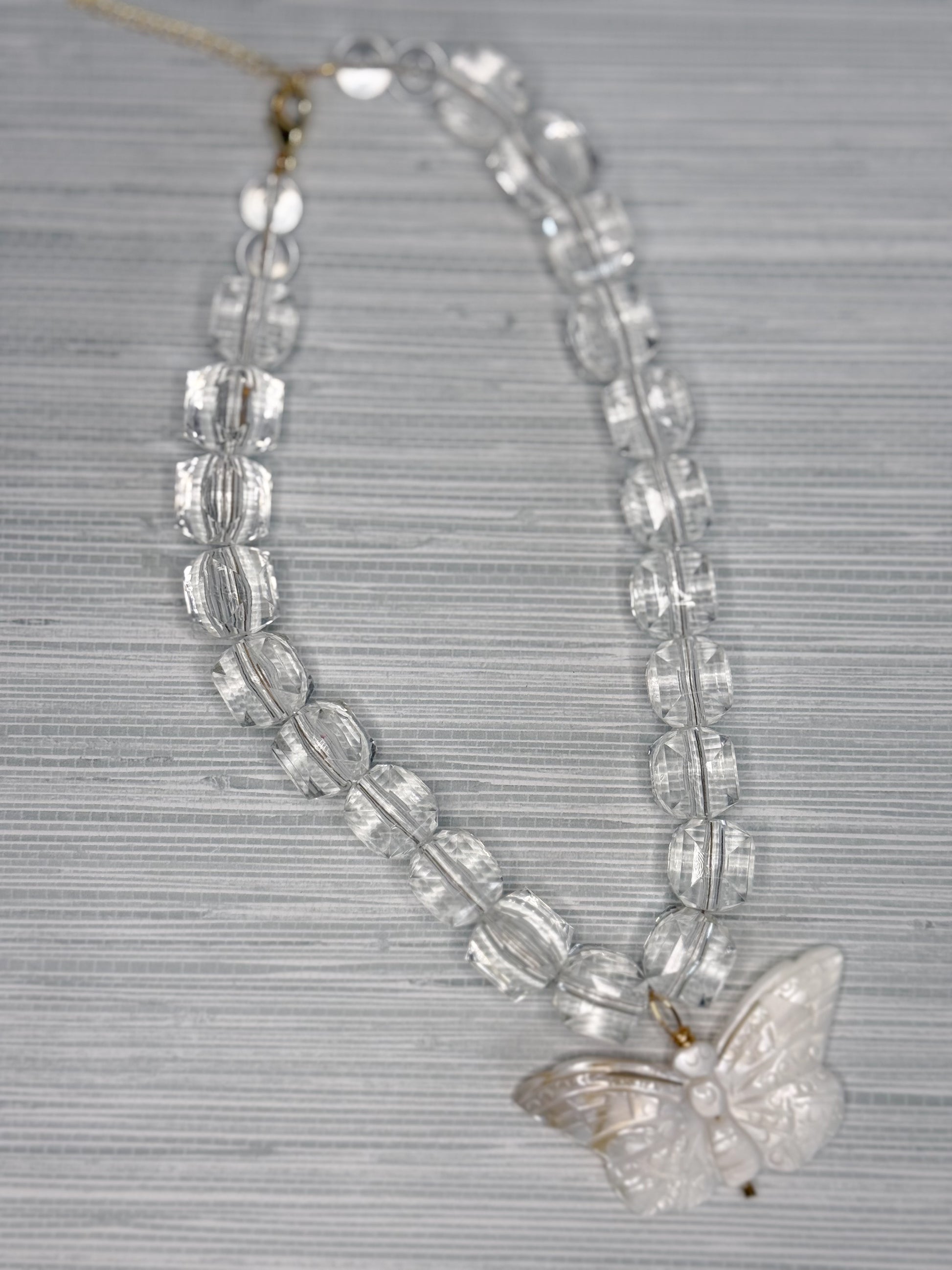Large Acrylic Bead with Mother of Pearl Butterly Necklace