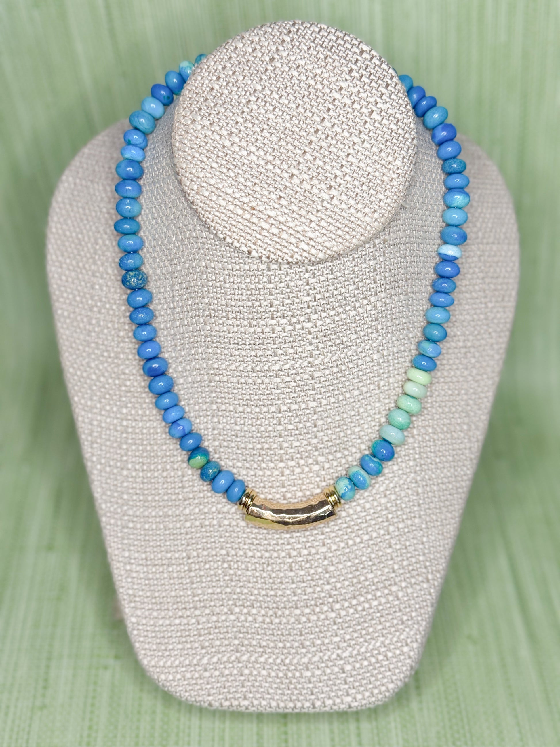 This 17" necklace features blue gemstone beads and a magnetic clasp