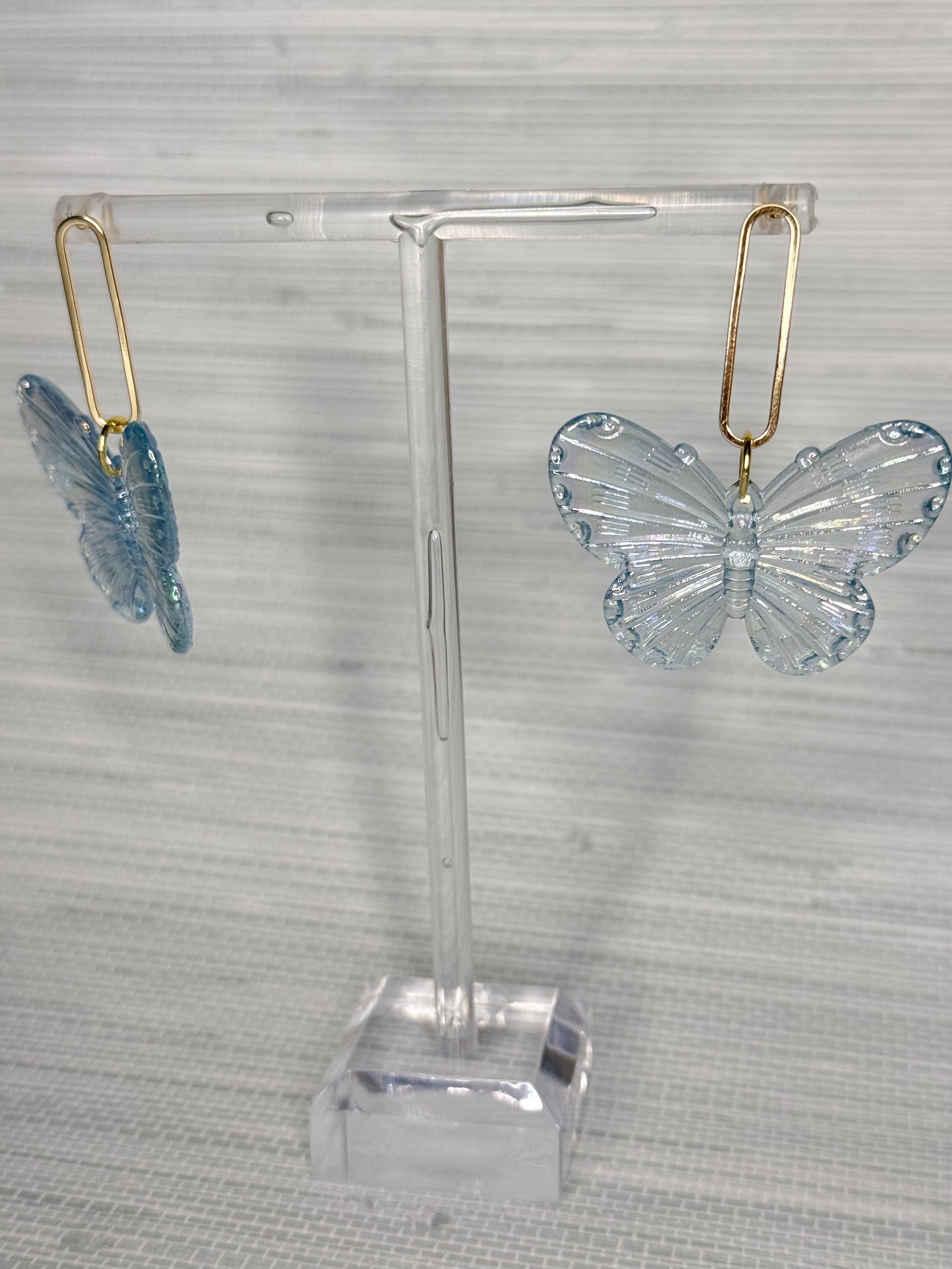 The Grace Earrings are a stunning blend of elegance and whimsy. Crafted from high-quality gold paperclip, these earrings feature delicate, periwinkle acrylic butterflies that add a playful yet sophisticated touch.