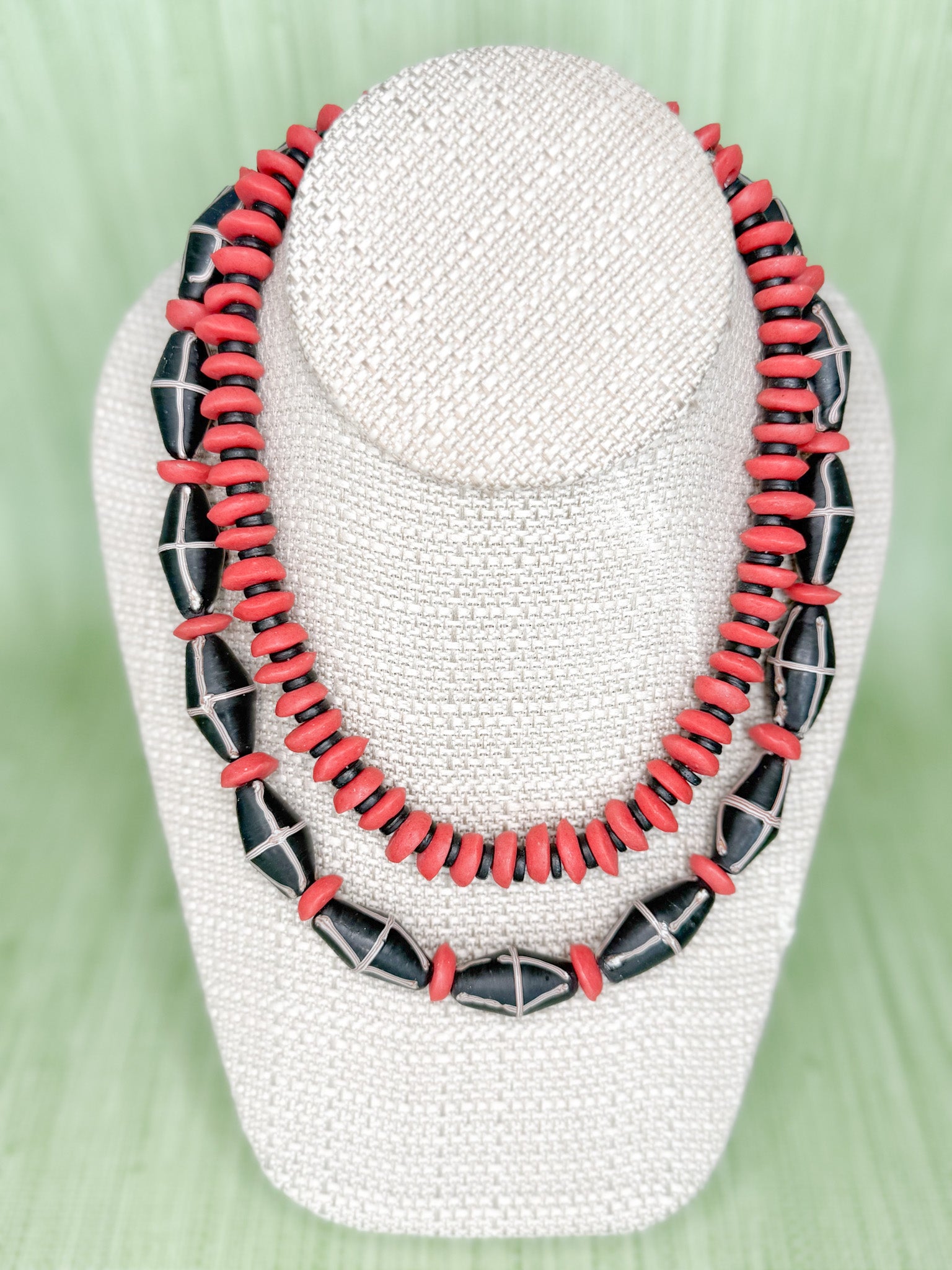 Classic. Timeless. Unstoppable. This stack features a 16" red and black necklace and an 18" black and red necklace, both finished with magnetic clasps for easy wear. Layered together, they capture the relentless spirit and style of Coach Smart.