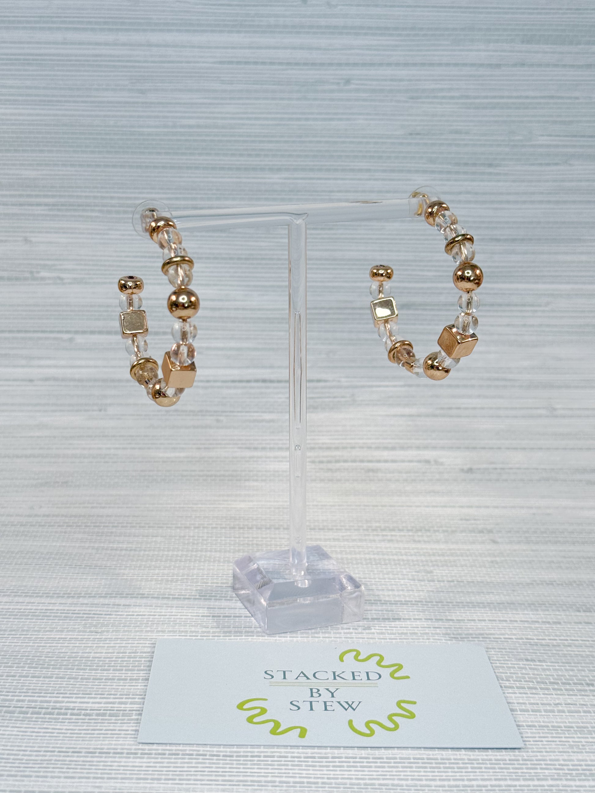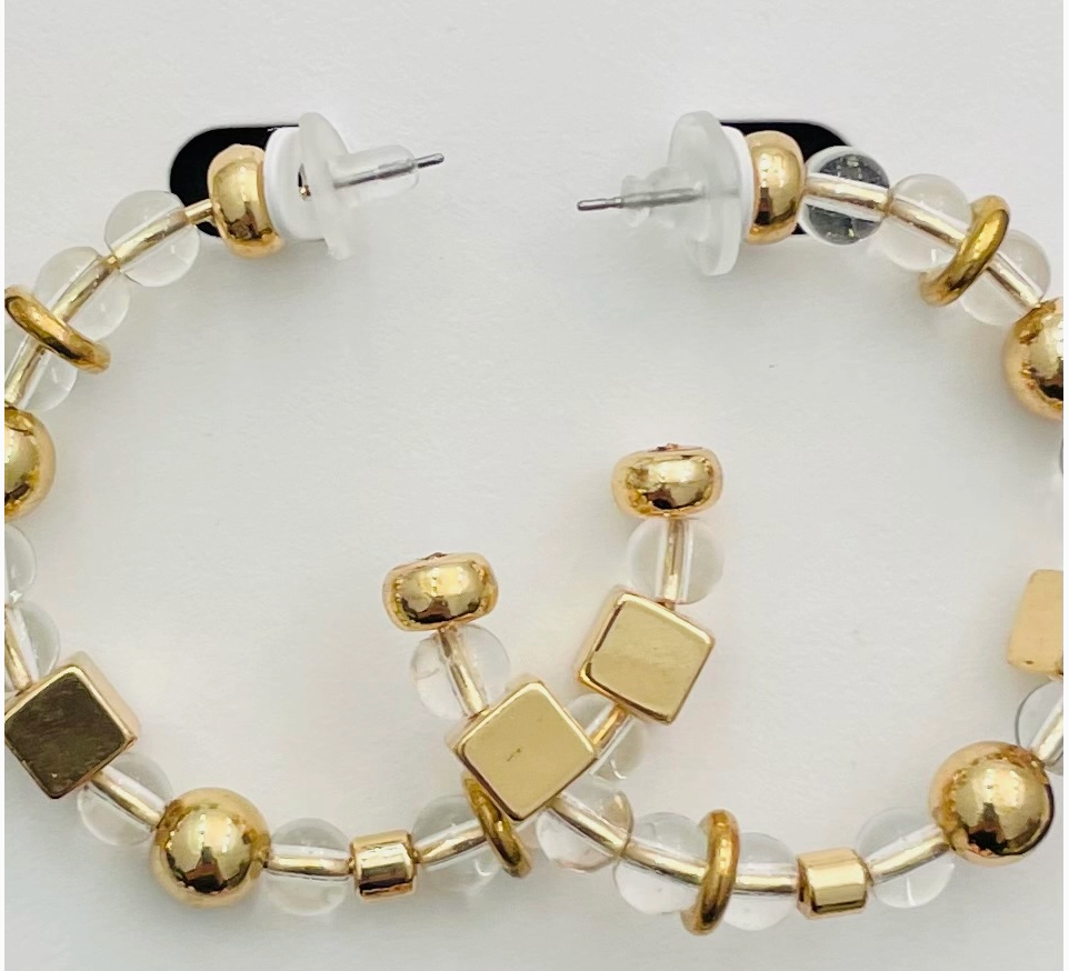Perfect for everyday wear! These 2-inch earrings feature a stylish blend of brass and acrylic beads, adding a touch of effortless charm to any look.