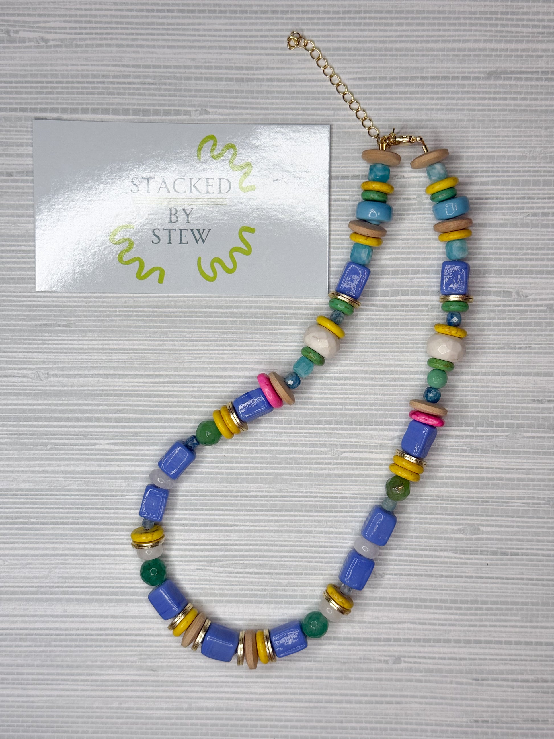 Meet the Paula Necklace, your new go-to for effortless color and texture! This beauty features a mix of deep blue glass barrel beads and natural gemstones, creating the perfect balance of bold and earthy vibes. Whether you're stacking it up or letting it shine solo, this piece adds a fun yet elevated touch to any outfit.
