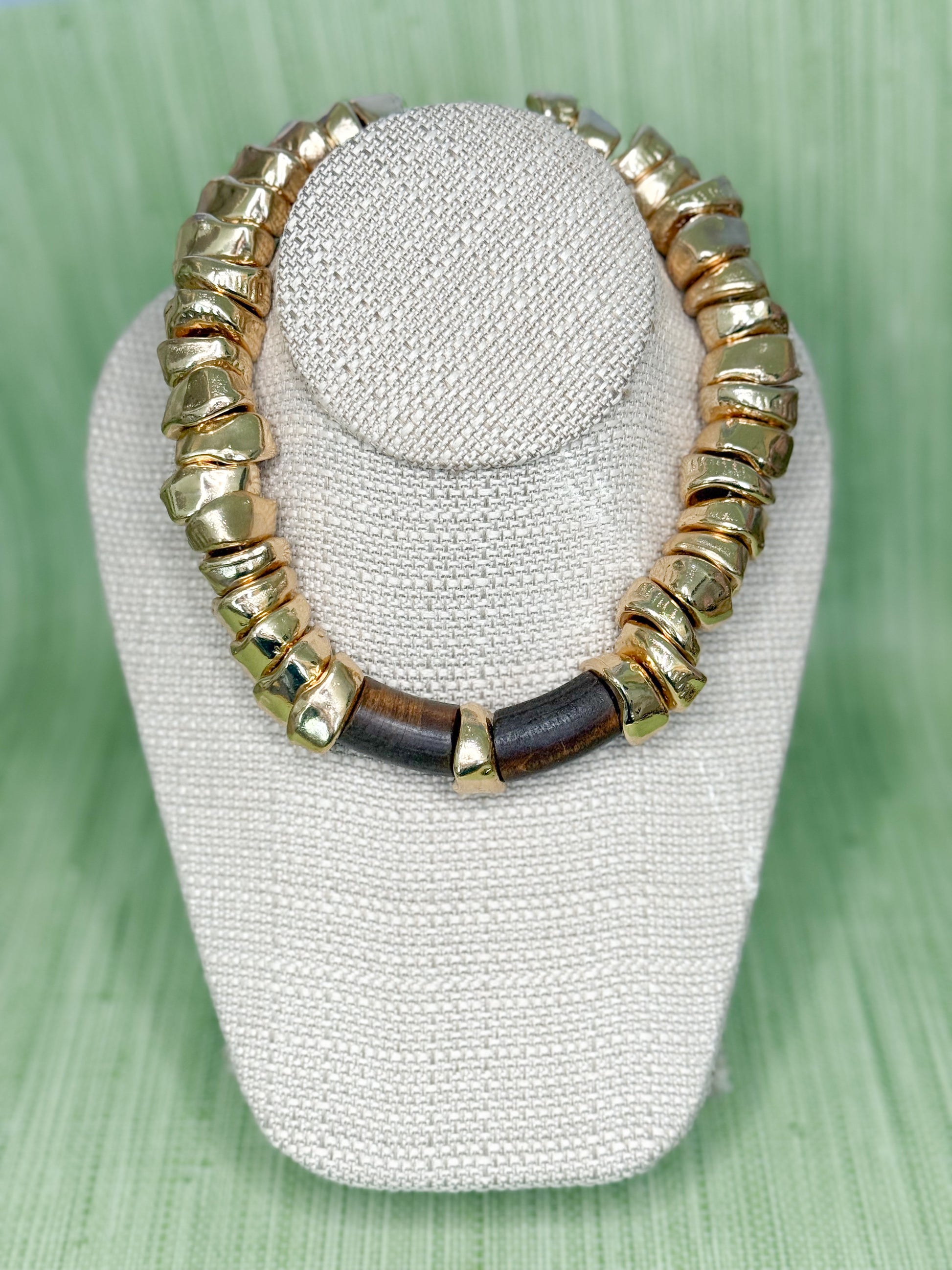 This stunning 16" gold and chocolate necklace is finished with a magnetic clasp